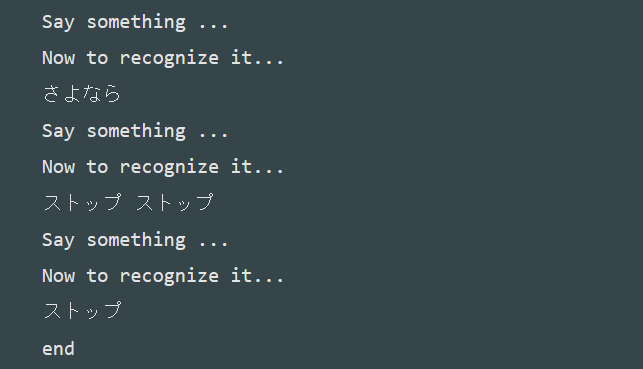 マイクに話しかけ(英語限定)音声入力でテキスト化する。以下は単純なテキスト化