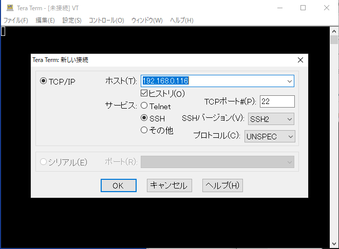 本実験ではGPUマシンが必要なため, Teratermを用いて研究室のGPUマシンにアクセスする
