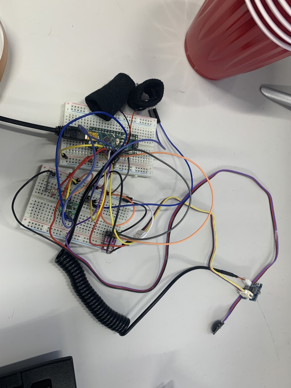 | 黒い線-GND | 赤い線-3.3V | 紫色の線-A0 |