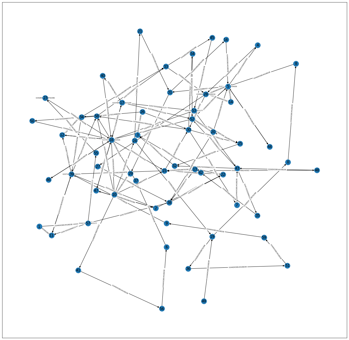 (線の太さがワードの関連度weight、線上を流れる点が向き)