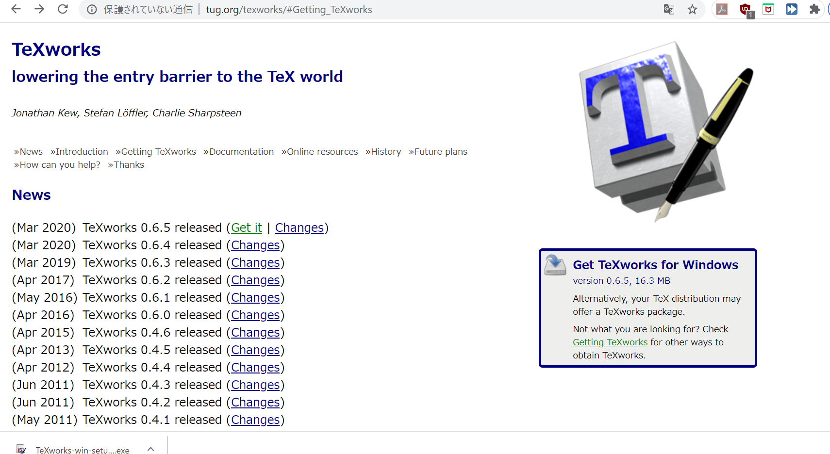 https://github.com/TeXworks/texworks/releases/ から TeXworks を入手できます.