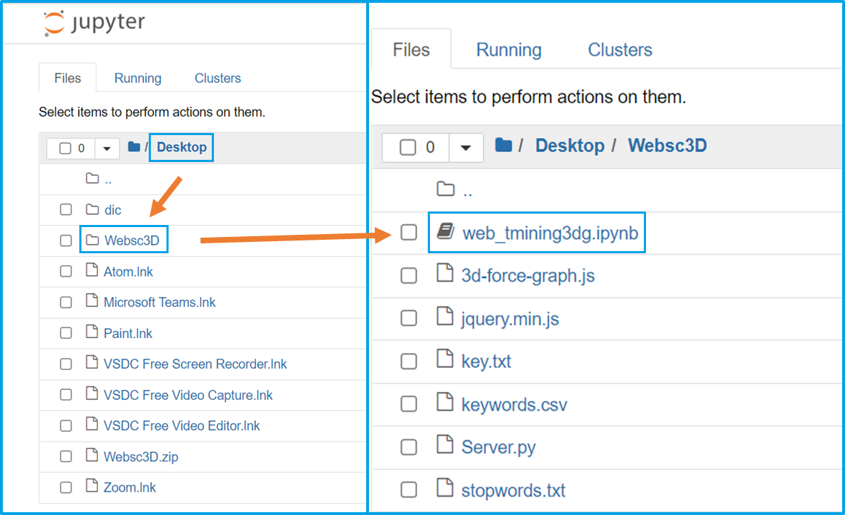 1.jupyterの画面でディレクトリをたどって、web_tmining3dg.ipynbを開く
