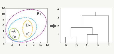凝集型手法は階層的手法の中でも、距離が近いものから同じクラスタに分類していくやり方になります。