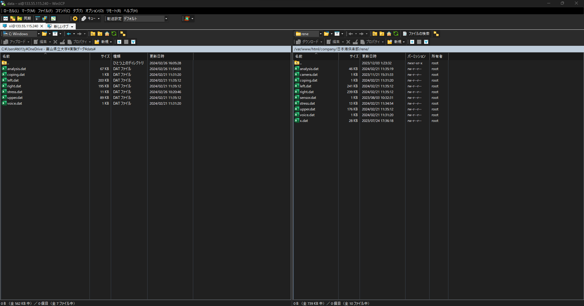 まずwinSCPを開き,winSCPの自分のフォルダの日本語があるdatファイルをダブルクリック→OKを選択する.