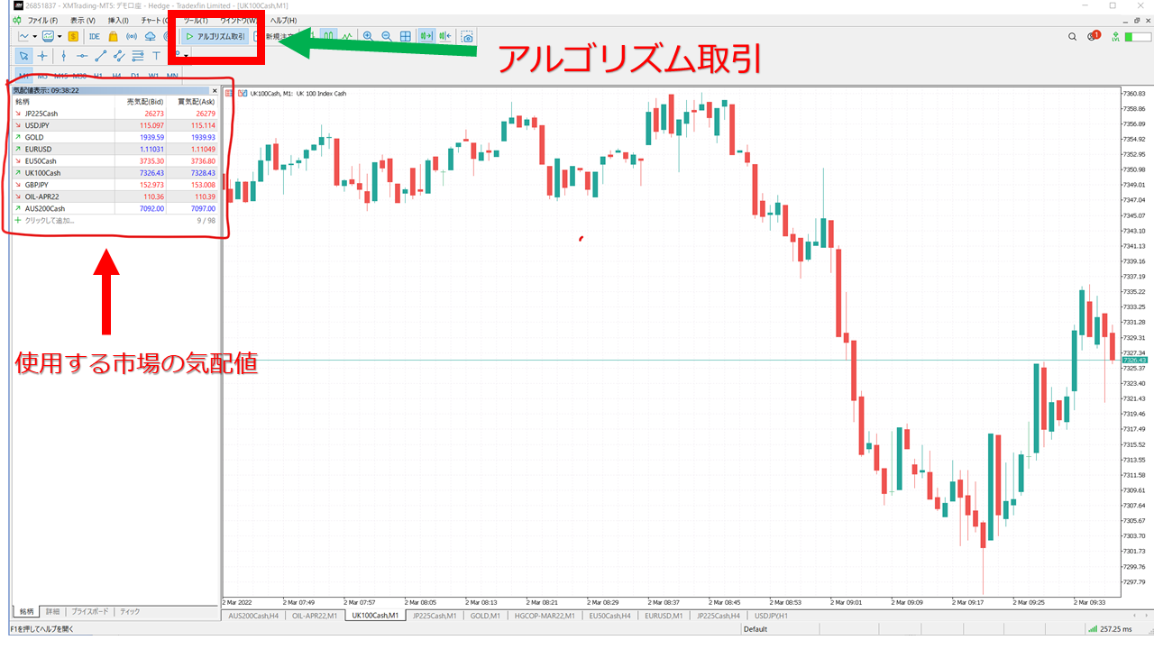 ※もし、ウィンドウが出てきたらで自動売買の許可にチェックを入れる。