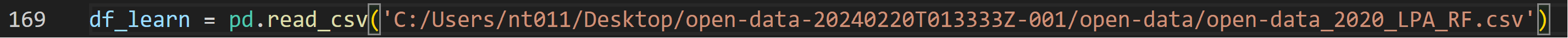・169行目: ファイルパスを自分で収集したデータが入ったcsvファイルのパスに変更する.