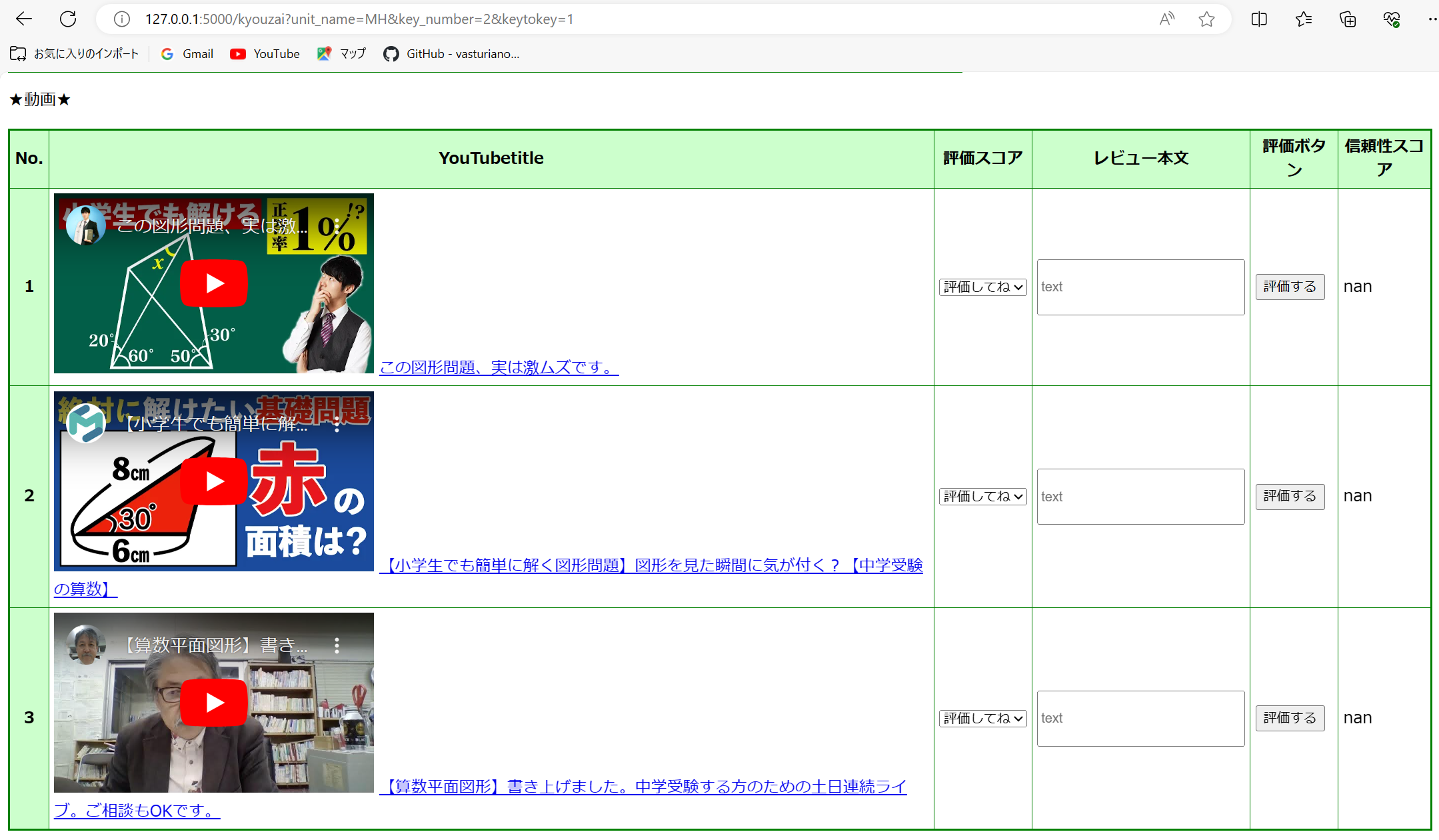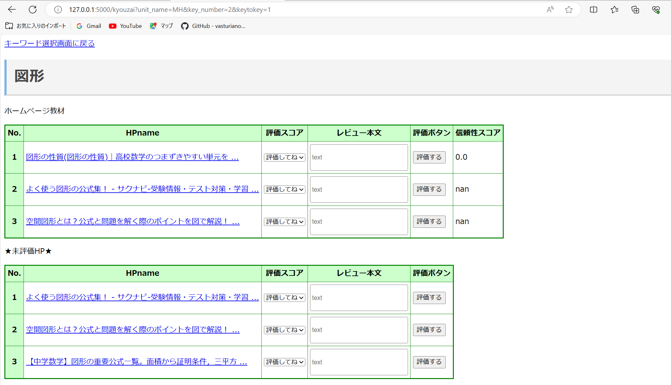 「図形」という単語をもとにスクレイピングされた教材が表示されるようになった。