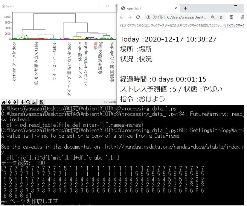 これらのファイルを保存しモジュールをpip installしまくった後,processing_data_1.pyを実行すると以下の出力とデンドログラムが得られ、htmlがedgeで開かれる。