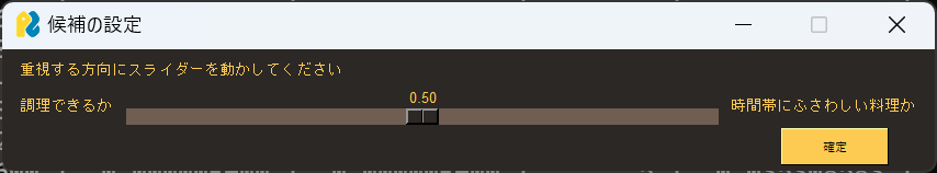 2献立作成.py を動かすと, 選択肢メニューが表示されるので, 2つ選択し, [選択]を押す.