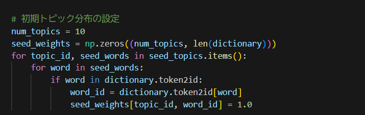 ここは予約語をもとに初期トピックの単語分布を設定している。