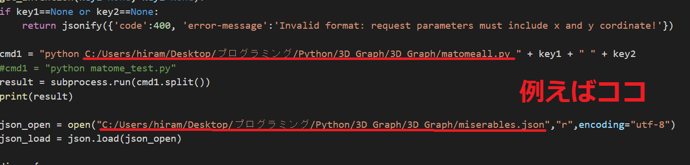 matomeall.pyに書いてあるmiserables.jsonなどのpathを各自のアドレスに直す必要がある