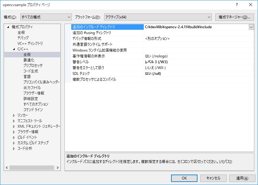 #include <opencv2/opencv_lib.hpp> // 静的リンクライブラリの指定