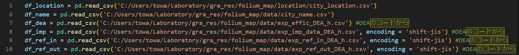 ・final_DEA.pyから排出されたファイルおよび前述のcity_location.csv,city_nameを自身のPC上の任意のディレクトリに配置し,7~10行目,5行目,6行目でそれぞれ指定する必要がある