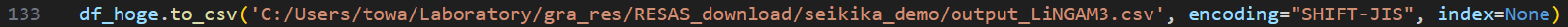 基本的には前述しているfinal_LiNGAM.pyを実行するだけで処理が完了する.出力として分析結果を格納したcsvファイルが排出される.ただし,以下の点に注意が必要である.