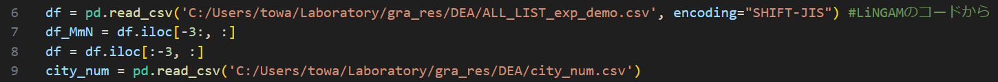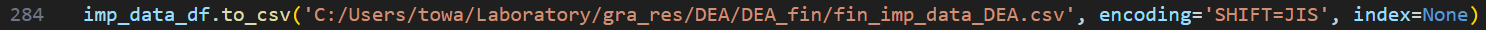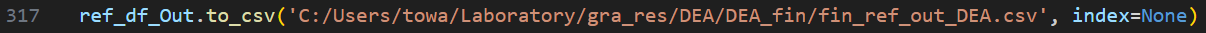(DEAについて) LiNGAMと同様に前述のfinal_DEA.pyを実行するだけでよい.出力として各市区町村の評価値,対象の市区町村における入出力改善値,入力指向モデルでの参照集合,出力指向モデルでの参照集合がそれぞれ格納されたcsvファイルが排出される.ただし,こちらも同様に以下の点に注意することが必要である.