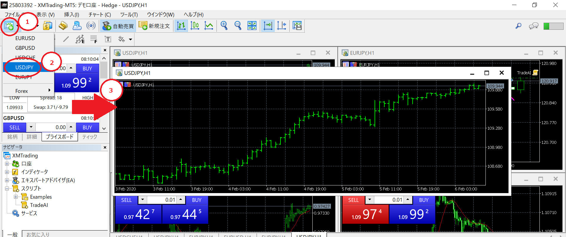次にUSDJPYのチャートを表示する