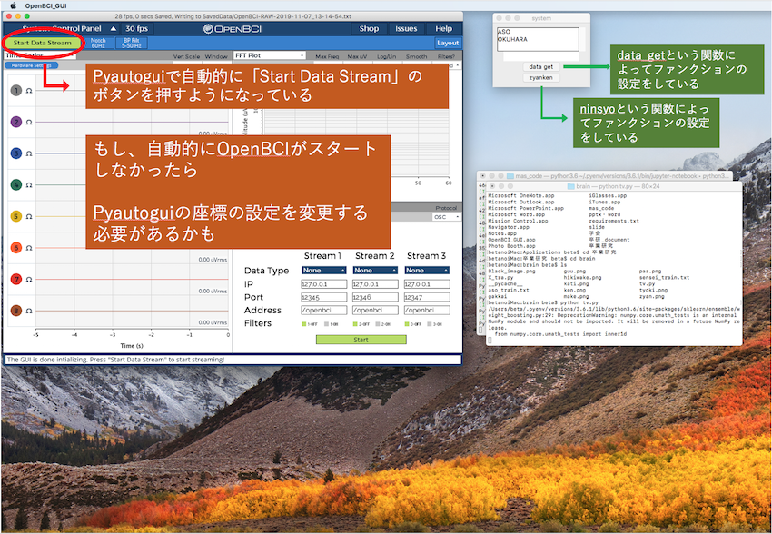 OpenBCIのスタートの位置にpyautogui.click(x,y)を合わせないといけない