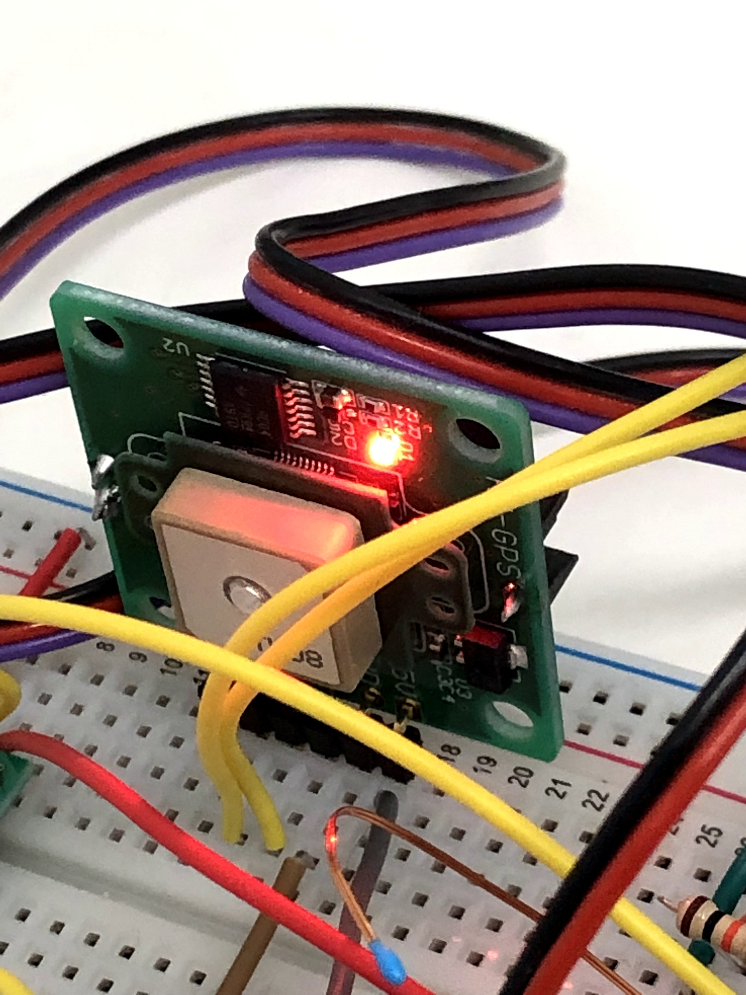 上のプログラムを起動する前に,GPSセンサの赤いランプを確認する.