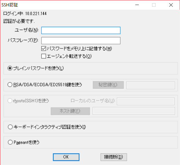 上のような画面が出てくるので,アドレスを「10.0.221.144」に変更し「接続」をクリック.