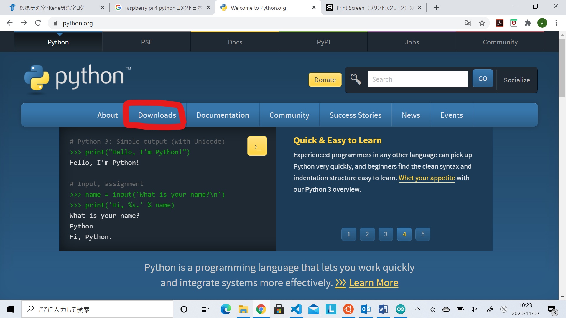 自分のパソコンにPythonをインストールする. https://www.python.org/