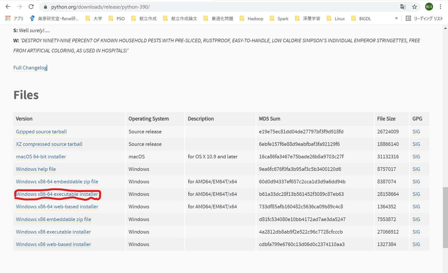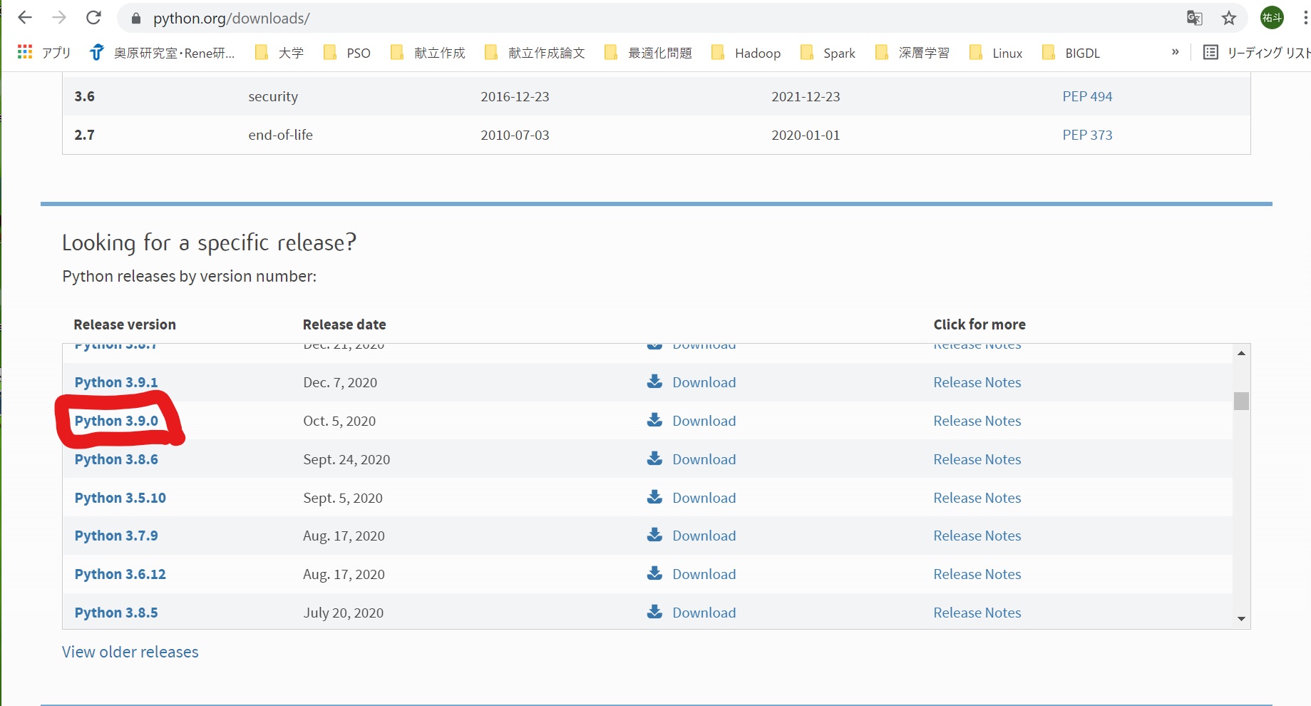 次に,Python 3.9.0の欄のDownloadをクリックする.