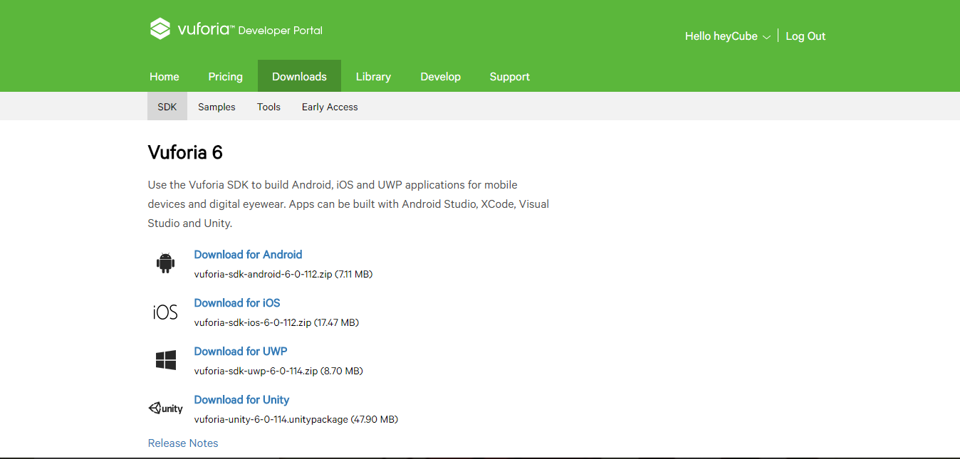 - Vuforia SDKのダウンロード