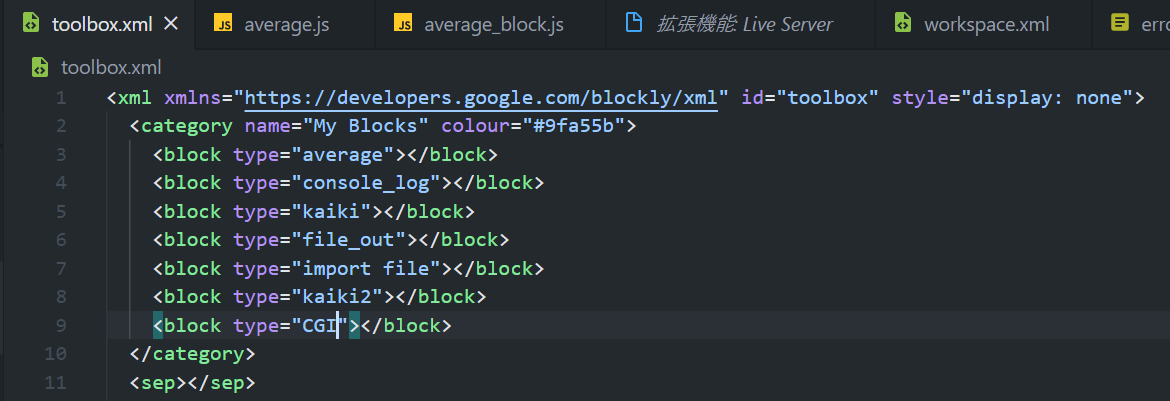 toolbox.xmlにブロックを書くことによって初めて使えるようになる。