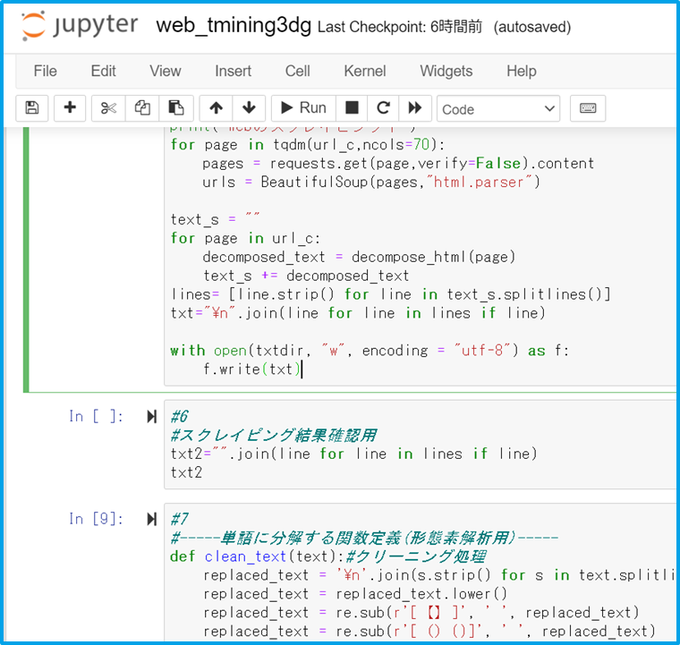 #8でやっていること:文章から不必要な文字列を除去し,Mecabの辞書に基づいて単語単位に分割する