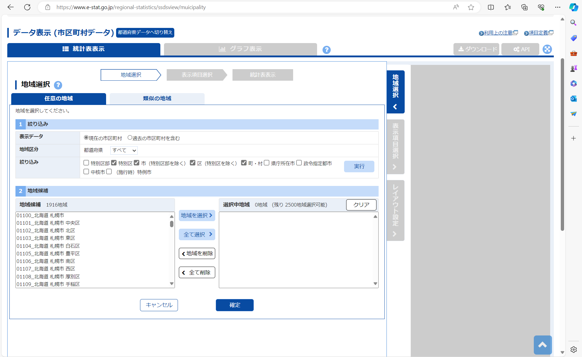 絞り込みで「区」を外し、地域候補は「全て選択」をクリックし確定