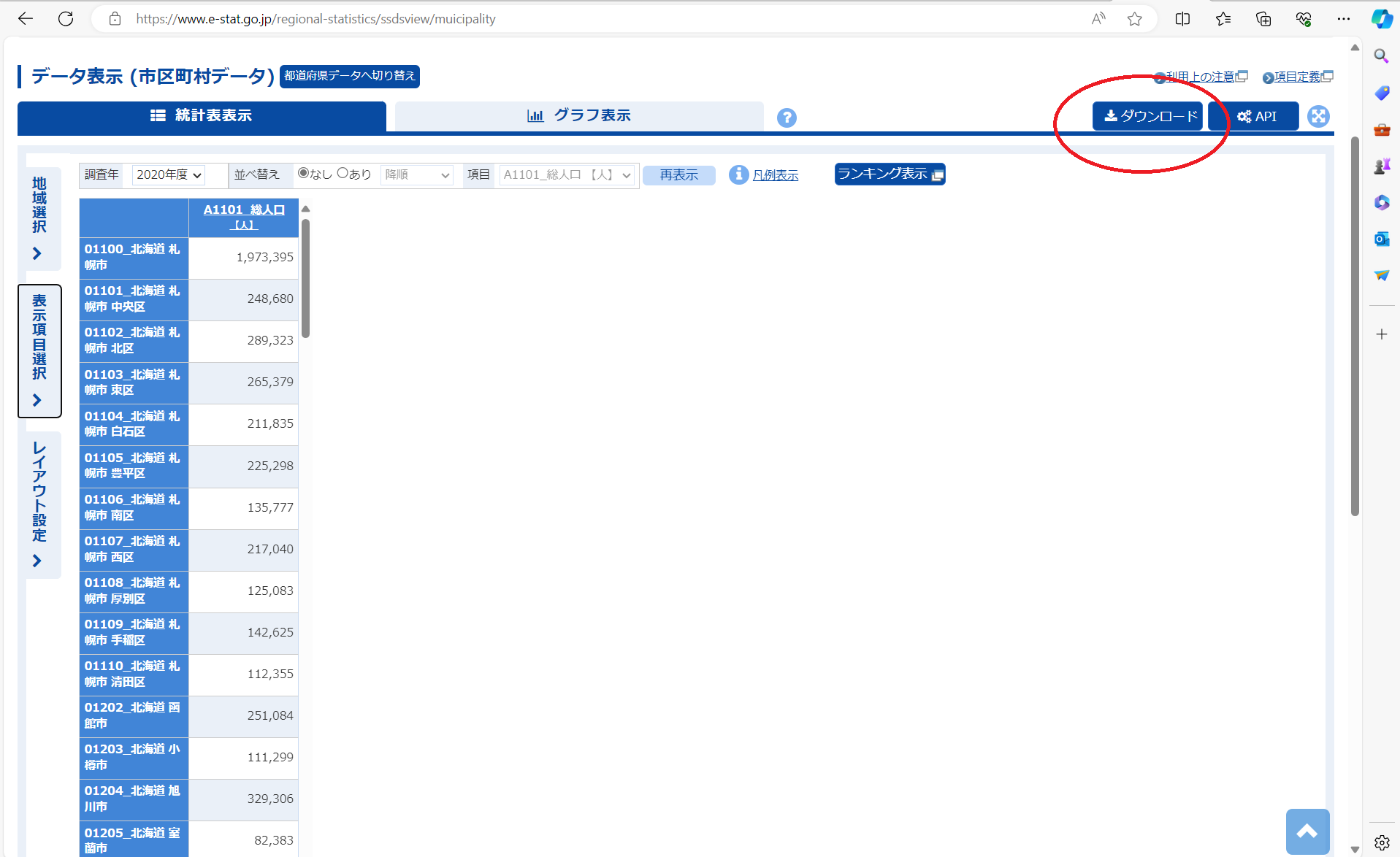 量的なデータ 市区町村コードが降られている コードと遂になっているもの探す e-stat
