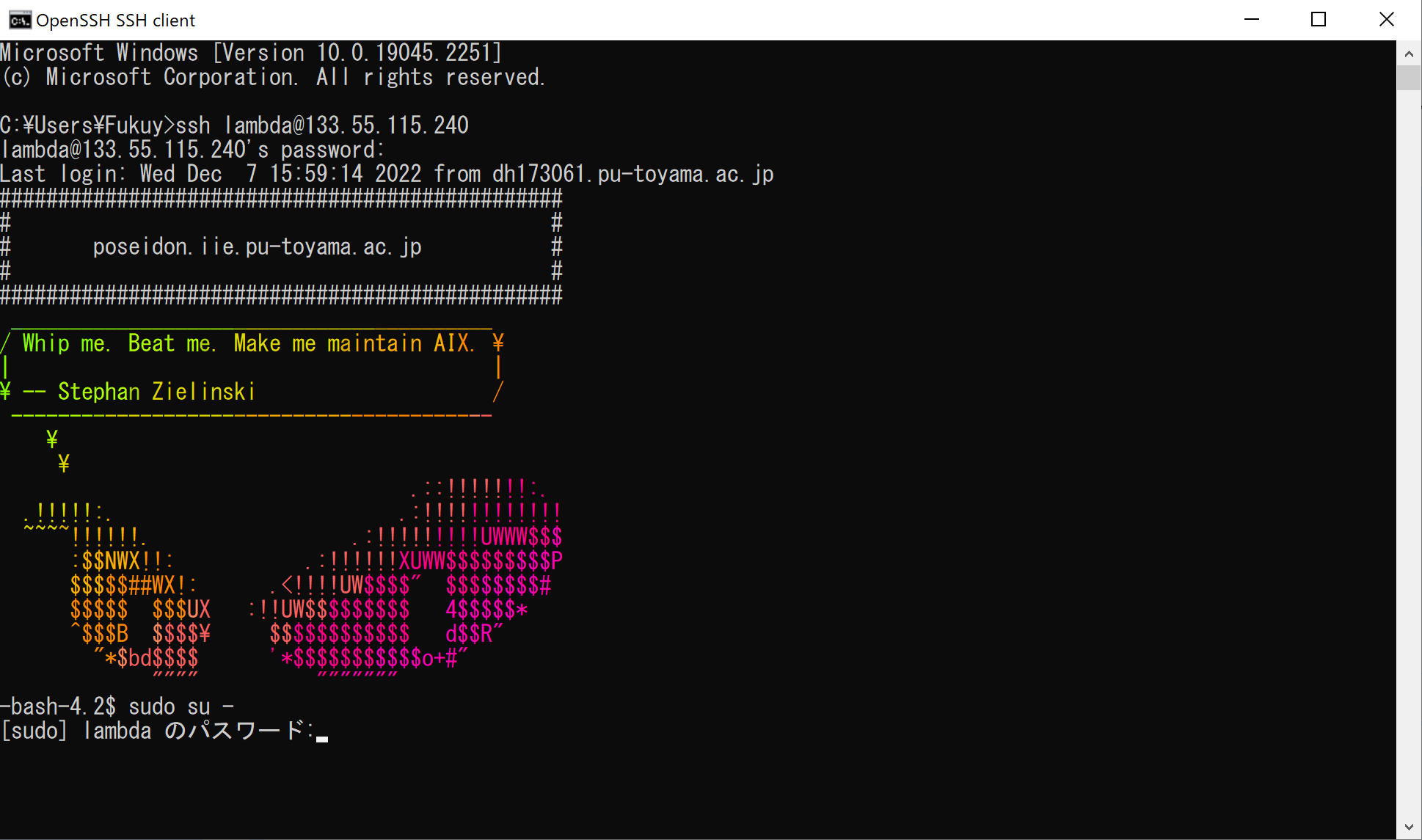 ssh ギリシャ文字@133.55.115.240