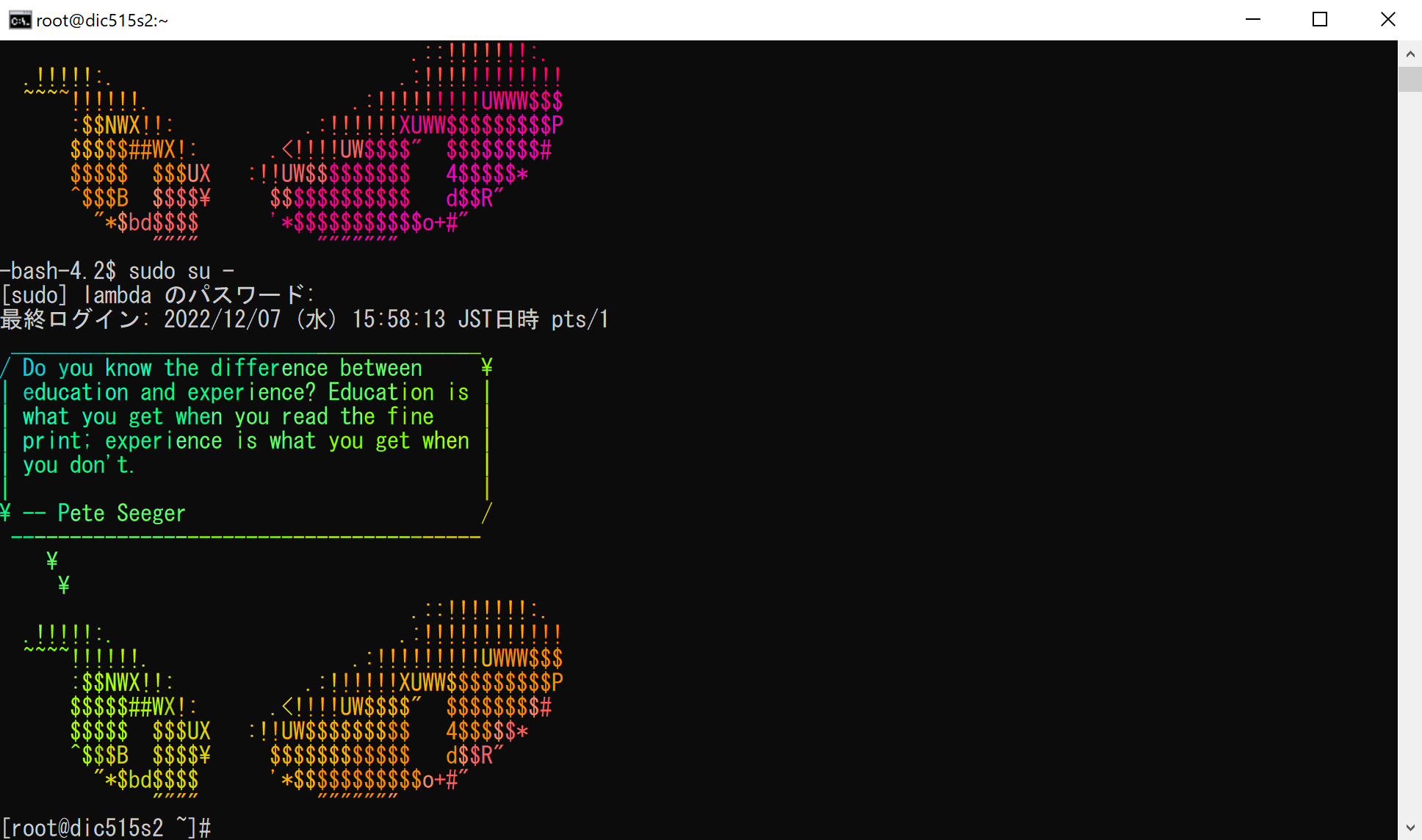 と入力する。するとパスワードを問われるのでギリシャ文字を含んだ自分のパスワードを入力する。