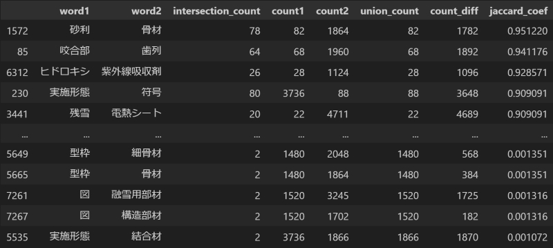 | simpson係数 | simpson係数の値と単語の出現回数など | jaccard_coef.pkl | application/practice |