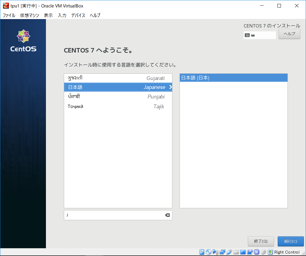 19. 使用する言語を「日本語(Japanese)」を選択し、右下の「続行」ボタンで続ける。