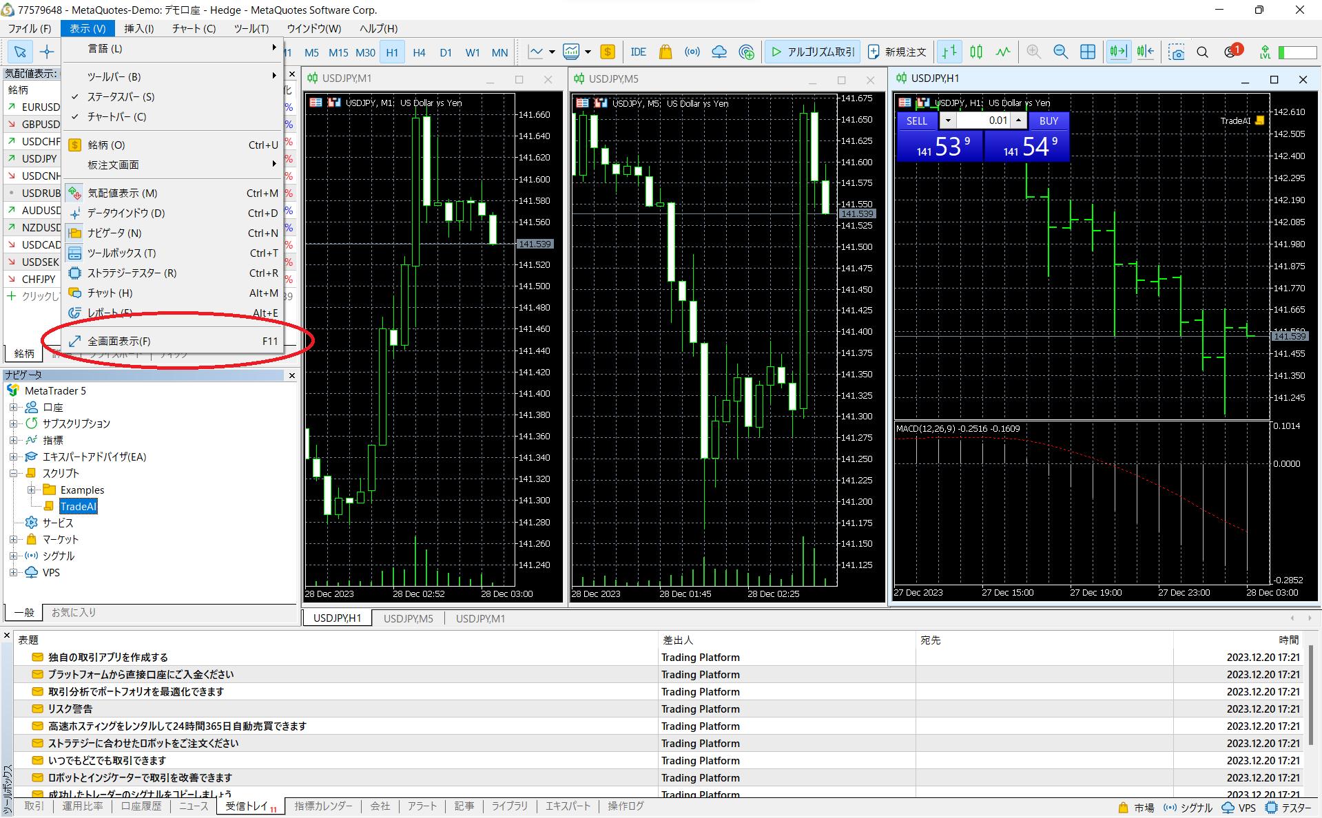 MQL5→scriptsにTradeAI.mq5を入れる。