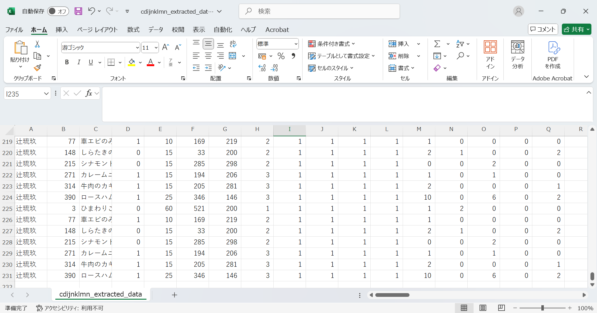 | 集めたデータ | cdijnklmn_extracted_with_headers.csv | Google ドライブ 2324 |