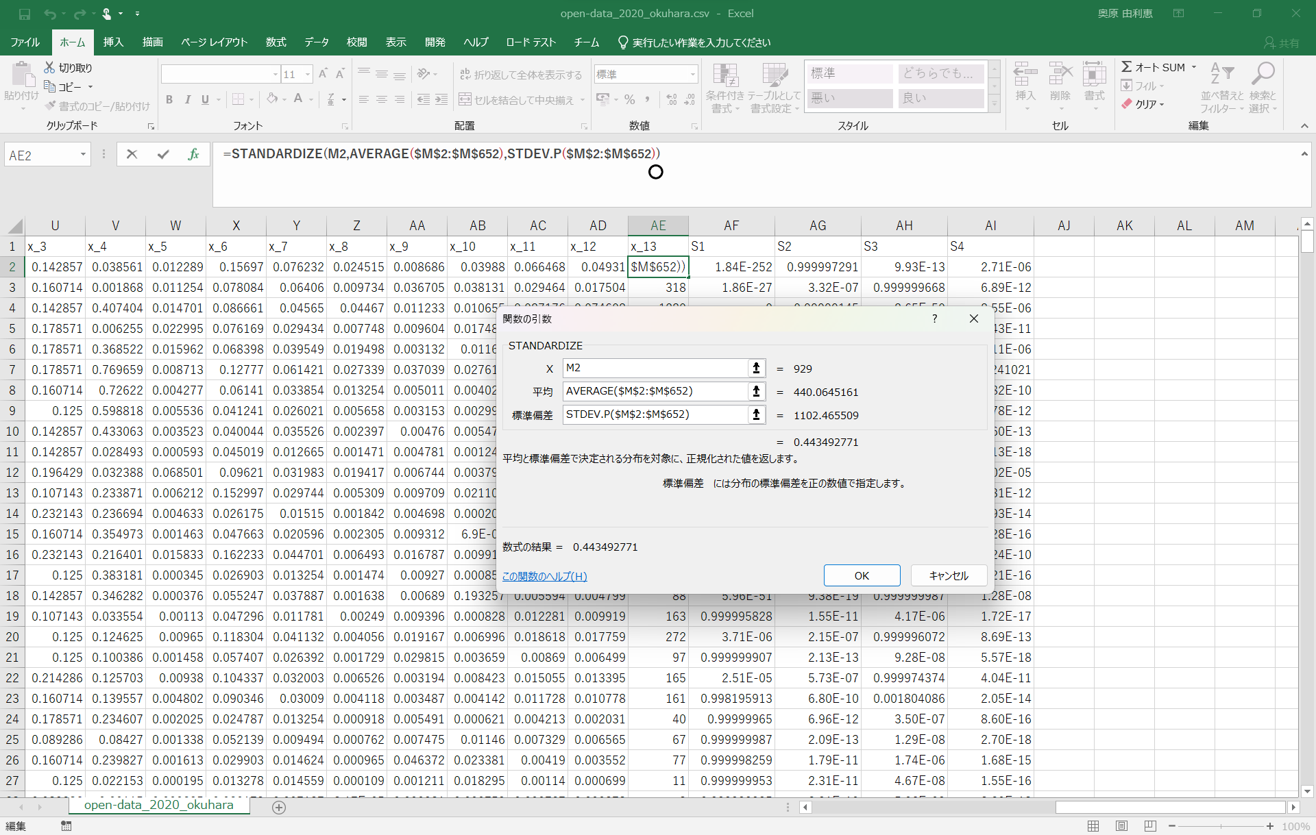 今回は「STANDARDIZE関数」を使い計算した