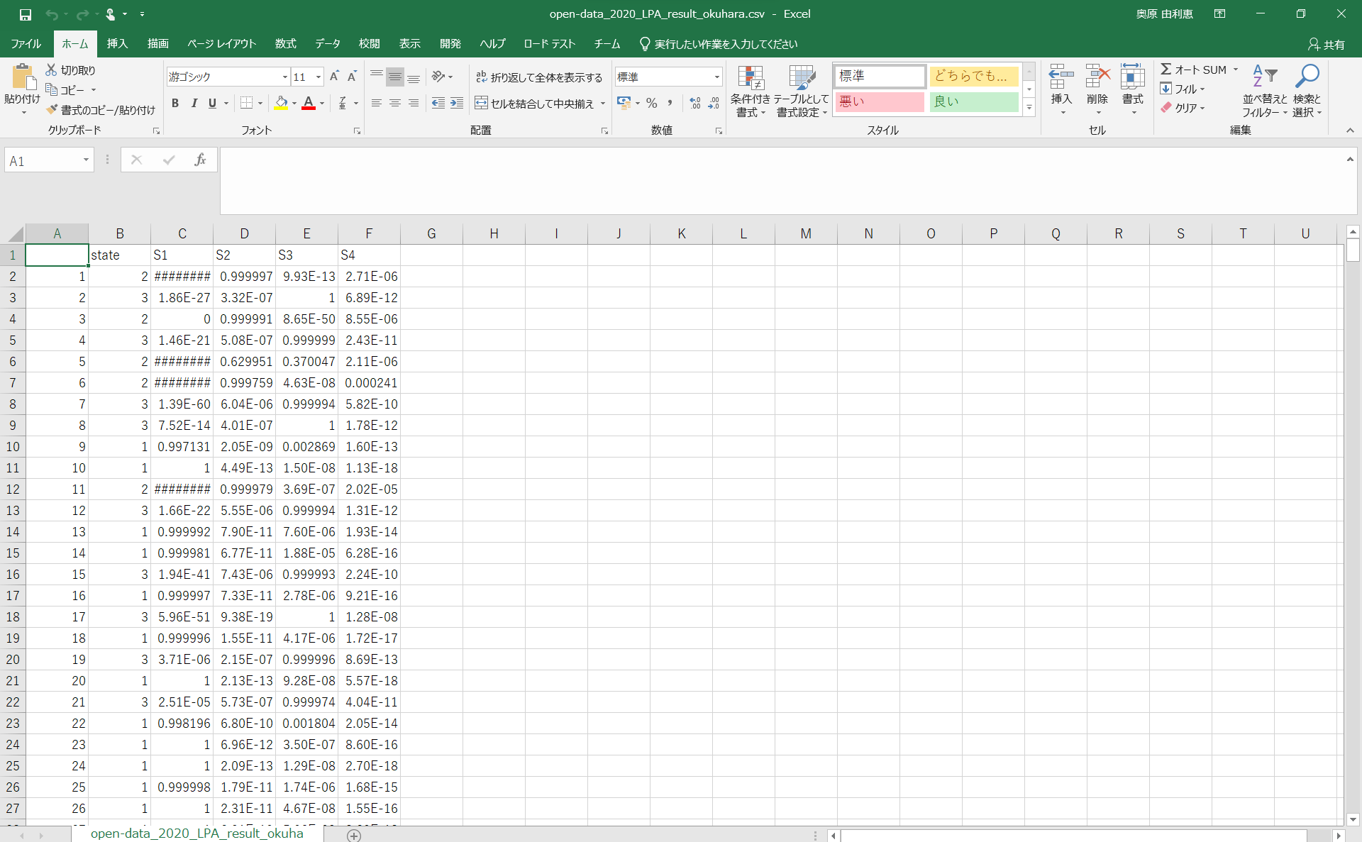 データのグループ分けで作成したファイル(今回はopen-data_2020_LPA_result_okuhara.csv)のC列からF列をコピーし、
