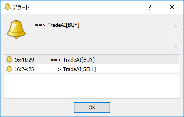 売買に成功すると以下のようなアラートが表示される