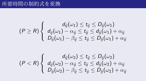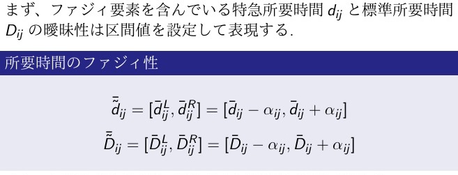 ①多目的ファジィランダム日程計画最適化を定式化(ファジィランダム変数を含む)