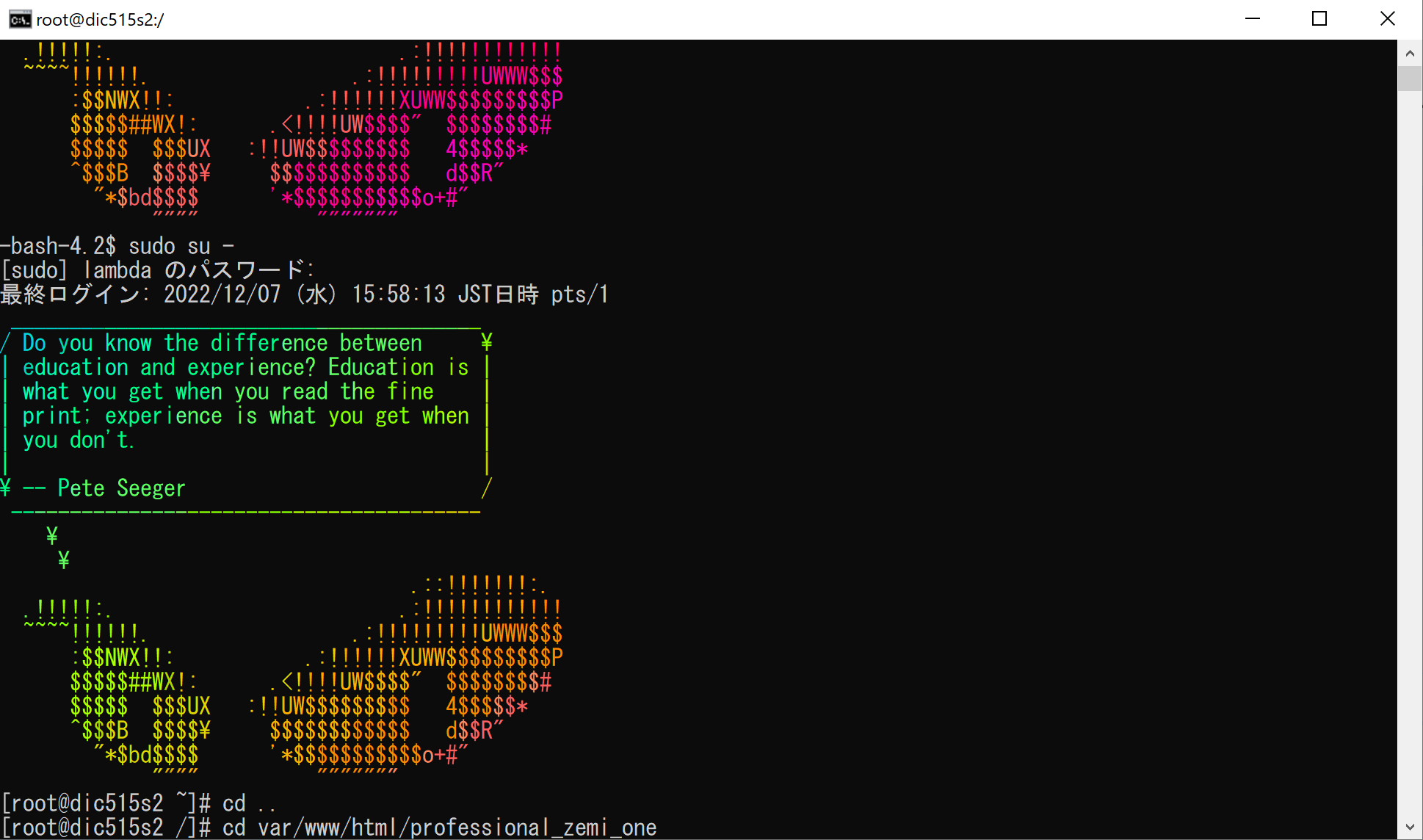 と入力すると今回の専門ゼミで用いるディレクトリに入ることができる。